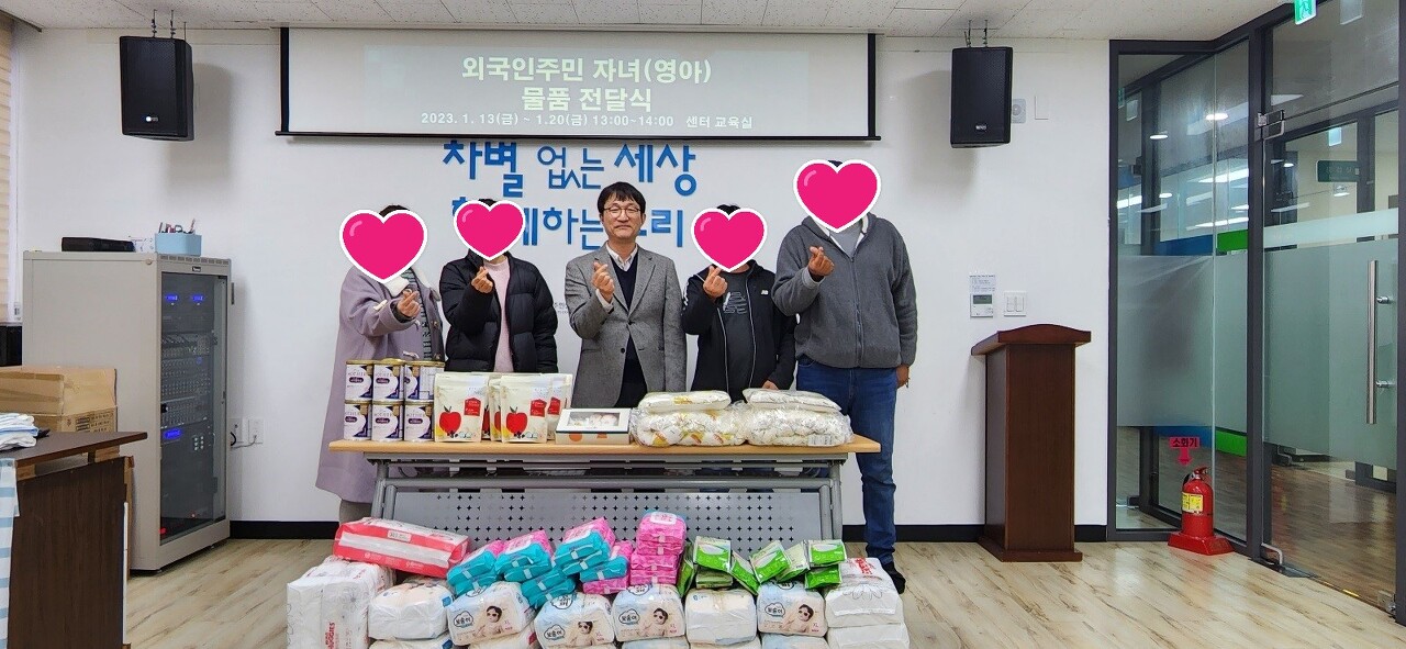 지원물품 : 기저귀(1단계~6단계), 분유, 이불세트 등