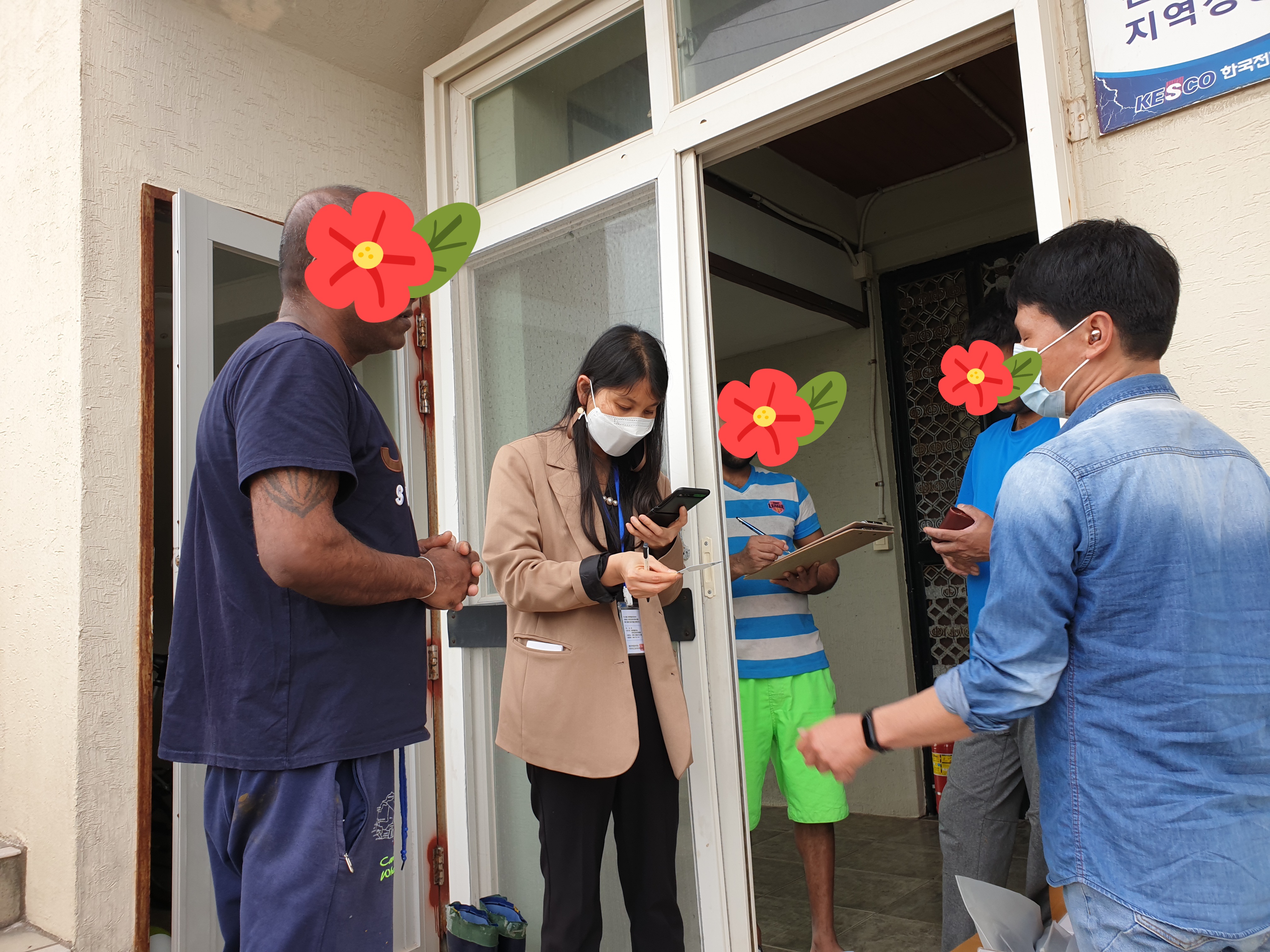 방문내용 : 사업장 및 기숙사 방문, 일상생활 고충 상담, 마스크 및 수첩 배부