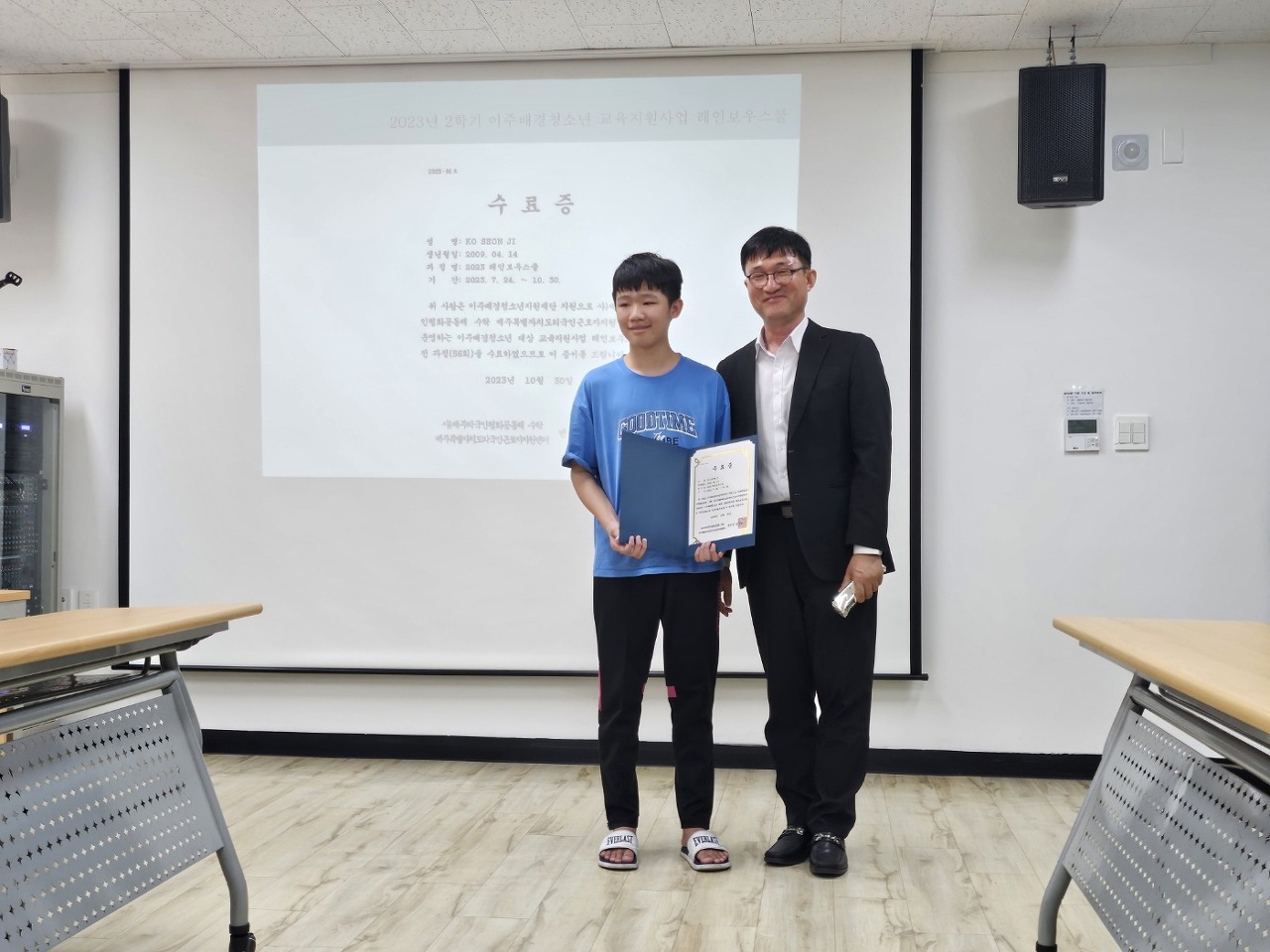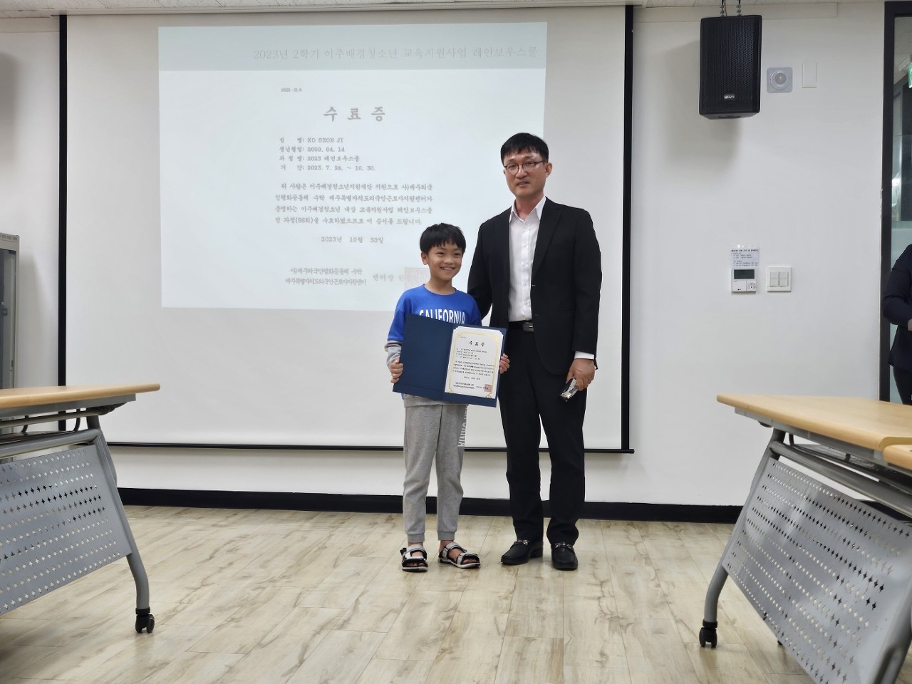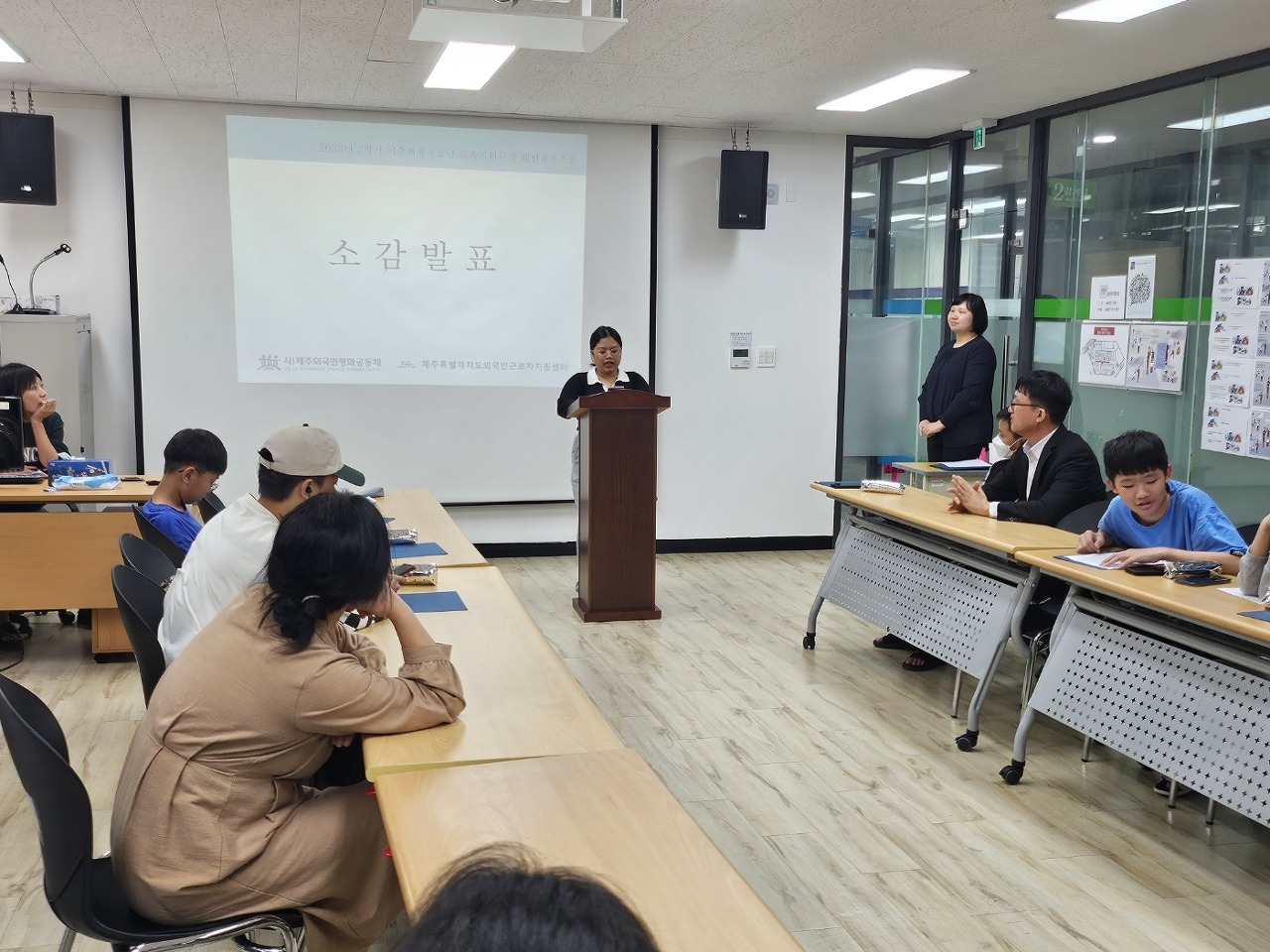 2023년 2학기 이주배경청소년 대상 레인보우스쿨수료식 진행 일시 및 장소 : 10월 30일(월) 오후 3시, 교육실 참여인원 : 4개국, 10명 내용 : 인사말, 2학기 운영현황(동영상),수료증배부, 소감발표 등