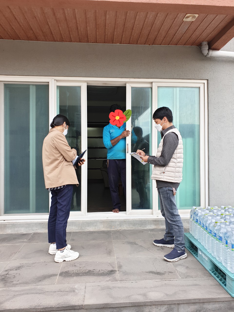 방문내용 : 사업장 및 기숙사 방문, 일상생활 고충 상담, 마스크 및 수첩 배부
