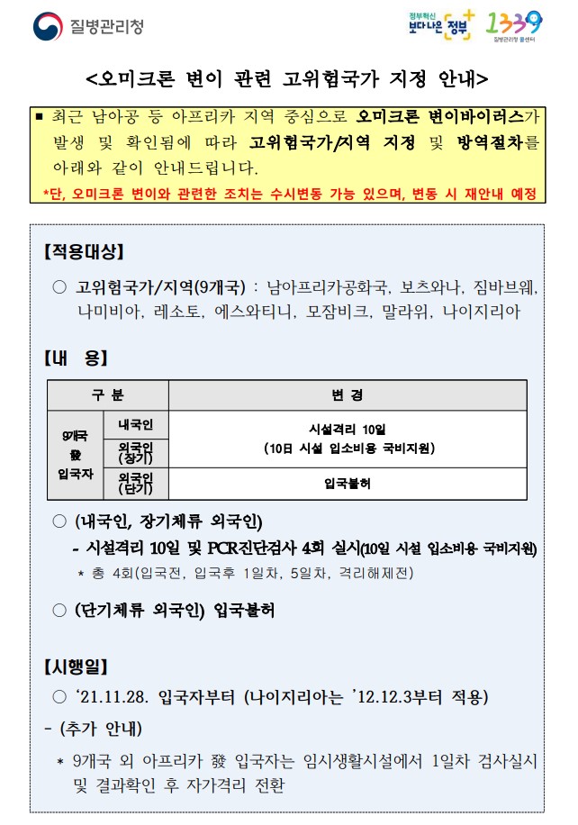 | 예방접종완료자 격리면제 제외국가 변경 안내 및 해외입국자 방역관리 흐름도(공항 입국자용) (0) | 2021.12.06 |