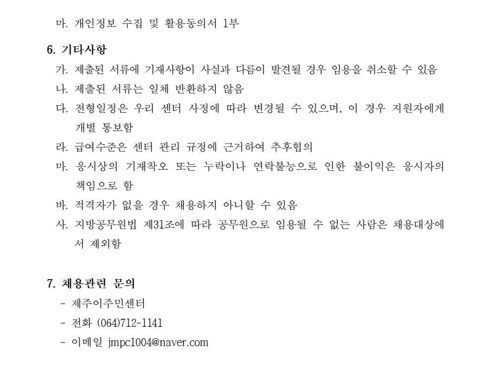 | [제주특별자치도외국인근로자지원센터]출산 및 육아휴직에 따른 대체인력(계약직) 채용 공고 (0) | 2023.01.06 |