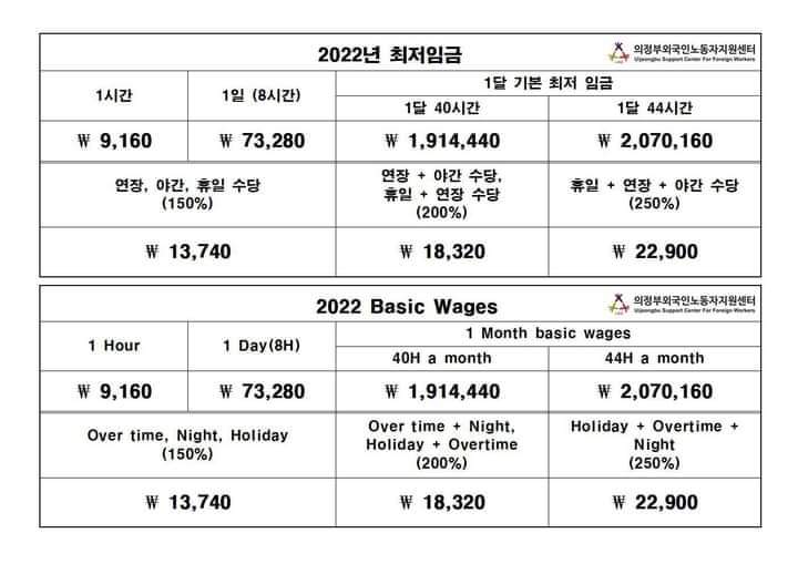 출처 : 최저임금외원회 및 의정부외국인노동자지원센터